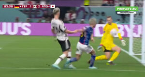 そして、三苫選手が切り込んで南野選手にボールが渡ります。