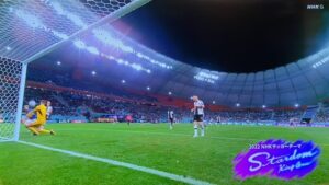 シュートかセンタリングか微妙なボールをキーパーが弾いて堂安選手が同点シュートを決めます。