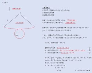 しかも、問題の中味によっては「その1」のように「面積から攻めるか」、「その2」のように「円周(弧)から攻めるか」が変わります。