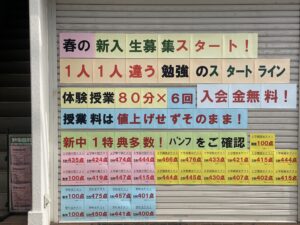 1階シャッター掲示物更新 @城陽市寺田にある個別指導塾 勉楽個別
