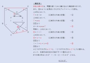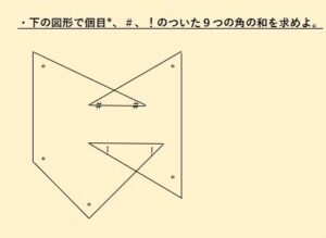 「9つの角の和」を求める問題ですが、どの角にも「〇〇°」とは与えられていません。