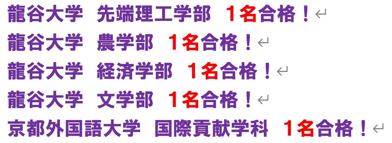 2026年度大学受験合格結果 @城陽市寺田にある個別指導塾 勉楽個別 寺田小・寺田西小・寺田南小・今池小・富野小・深谷小・久世小・久津川小・古川小・城陽中・西城陽中・東城陽・北城陽中・南城陽中・南陽高・城南菱創高・莵道高・久御山高・城陽高