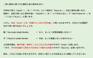must と have to の微妙な違い(肯定文) @城陽市寺田にある個別指導塾 勉楽個別 寺田小・寺田西小・寺田南小・今池小・富野小・深谷小・久世小・久津川小・古川小・城陽中・西城陽中・東城陽・北城陽中・南城陽中・南陽高・城南菱創高・莵道高・久御山高・城陽高
